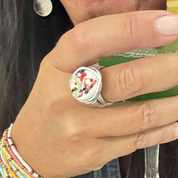 Step into a world of wearable expression with the Farrell Collection. This curated series is a tribute to abstract art, where vibrant colors and fluid shapes collide. Hand-sculpted from authentic Murano glass, these rings aren’t just accessories—they are bold, artistic statements for the modern soul.